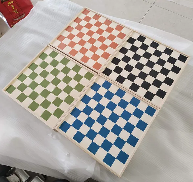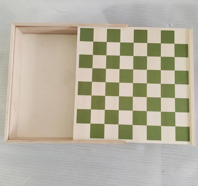 Natural wood chessboard boxes in four colors, wooden sliding top storage boxes with chessboard pattern